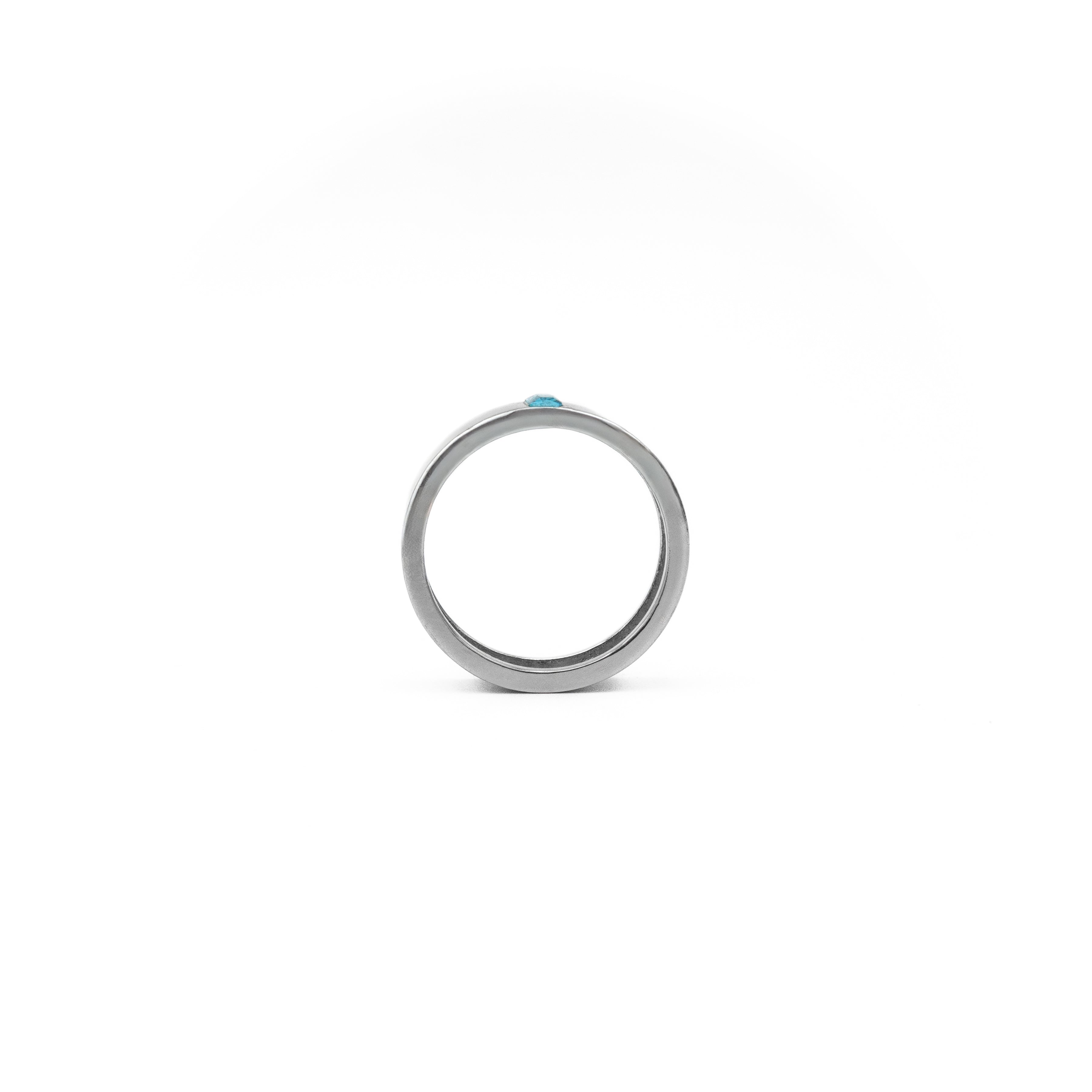 A refined fusion of color and craftsmanship, designed for the modern gentleman. Handcrafted from premium 925 sterling silver, this lightweight ring features smooth outer surfaces and a hollow inner band, finished with a chrome polish to maintain comfort and a featherlight feel.