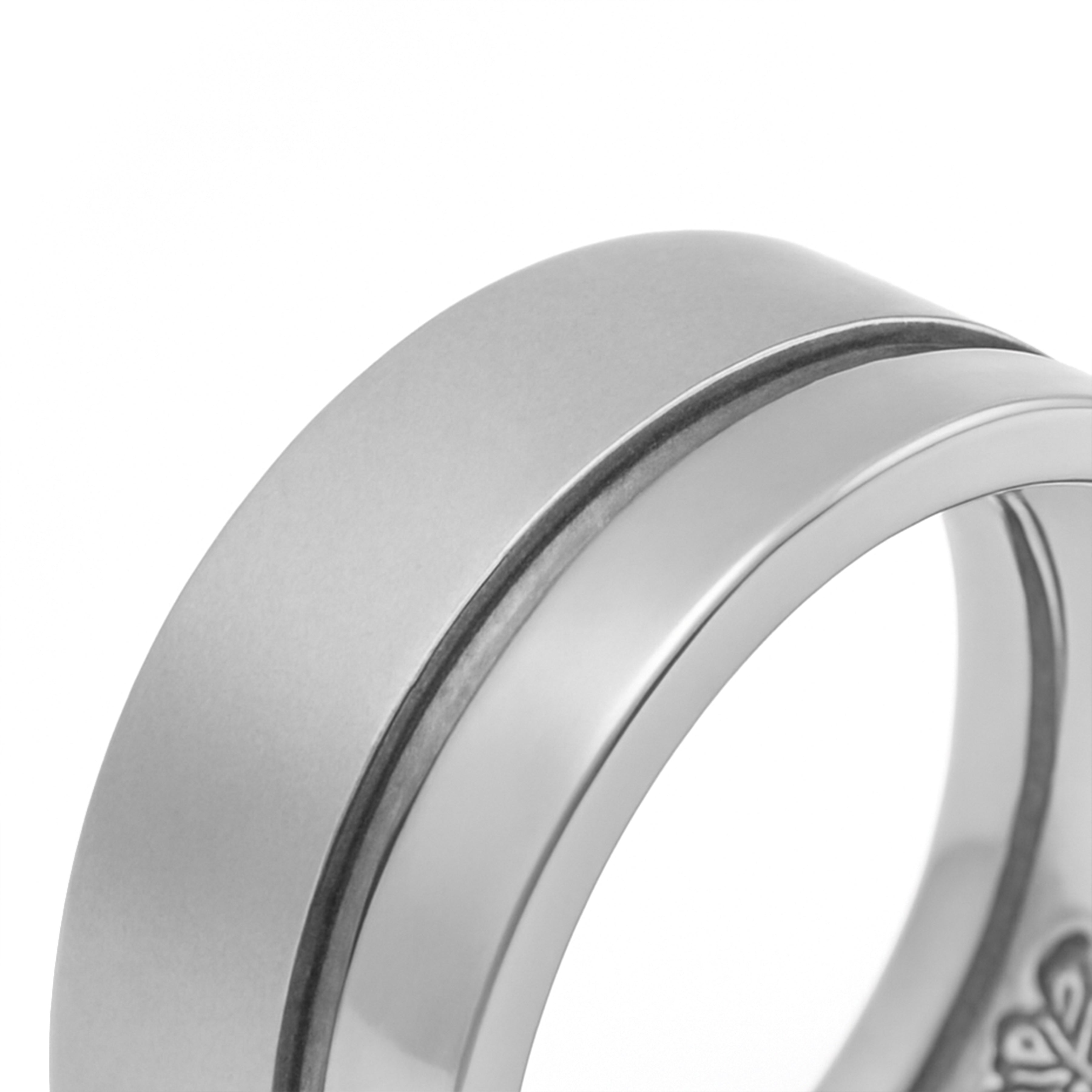 An engraved line traces the circumference, a statement of precision! Sleek yet substantial, this ring offers a tactile sense of strength and balance, making it a timeless accessory.