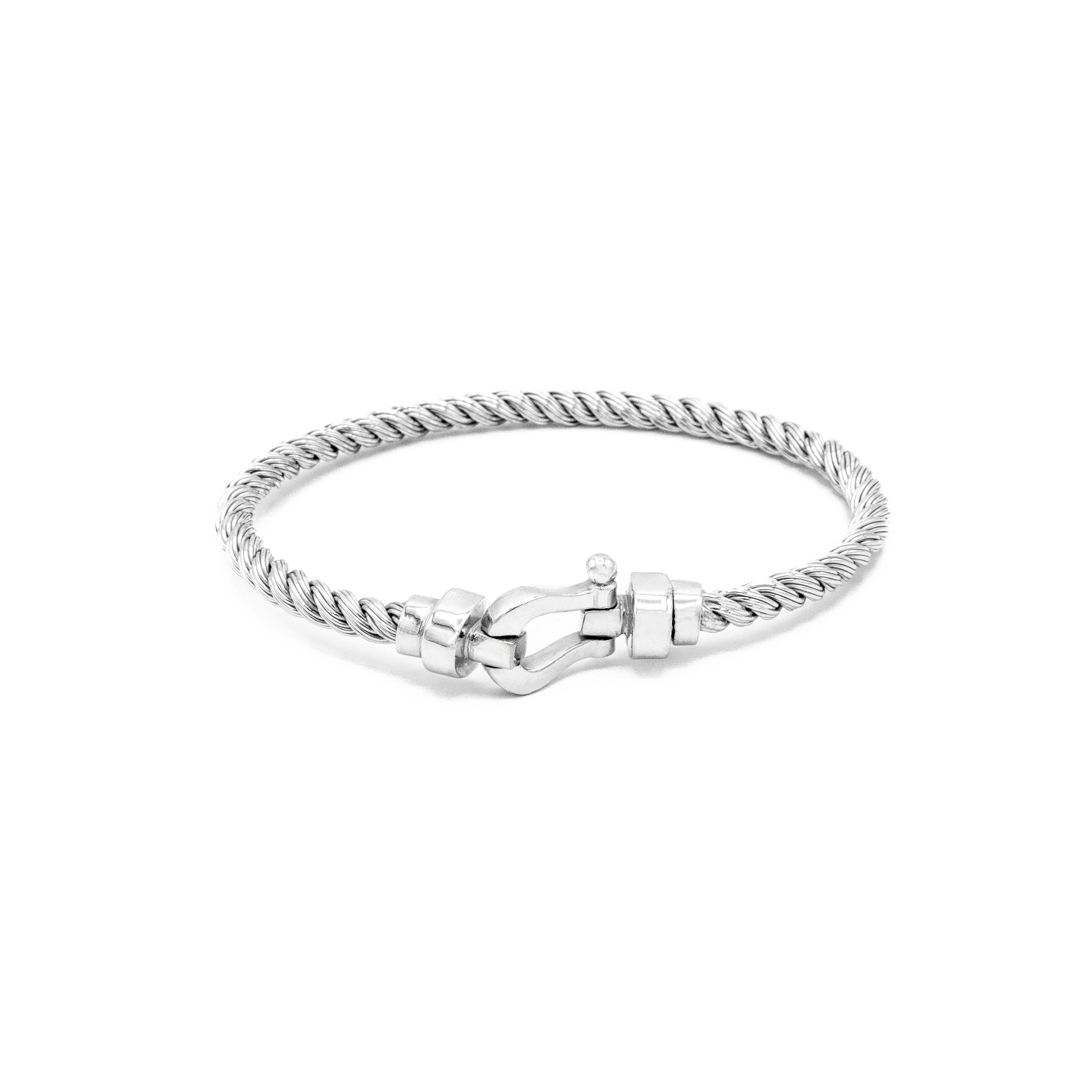 A commanding tribute to equestrian heritage and contemporary finesse. Meticulously braided from solid 925 sterling silver, this bracelet mimics the strength and precision of finely coiled rope. Its standout feature, a polished horse-bit-inspired buckle with a seamless integrated locking mechanism, anchors the piece with an unmistakable sense of power!